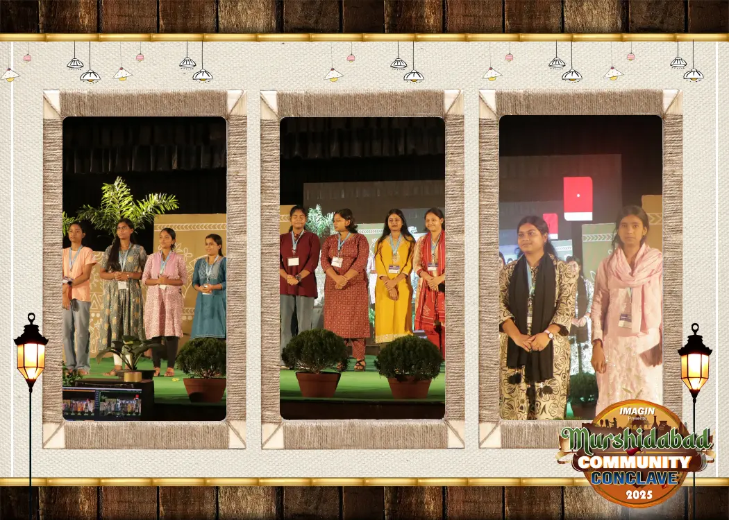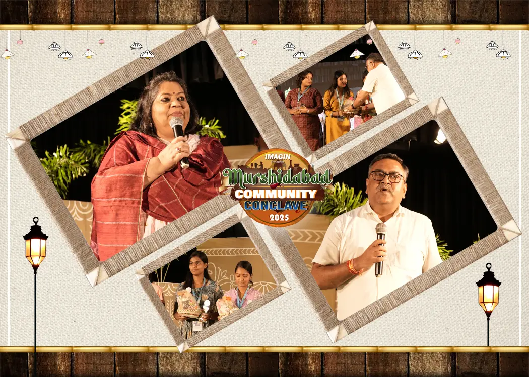On 19th and 20th September 2025 IMAGIN organized Murshidabad Community Conclave 2025 with the mission of uniting communities for development. Presence of Rajarshi Mitra, District Magistrate -Murshidabad, Samsur Rahaman , Additional District Magistrate- Murshidabad, Sukanta Saha- Project Director, District Rural Development Cell (DRDC), Subhankar Roy, SDO-Berhampore, Suchorita Bardhan- Communication Specialist, UNICEF, Dr. Snehasis Sur, President of the Press Club – Kolkata, Dhrubajyoti Pramanik – Managing Editor, Network18, eminent artist Sudip Roy, Dr Hena Sinha, Principal, Berhampore Girls College, famous actor Pradip Bhattacharya, Badash Moitro and many other eminent guests made the Community Conclave a great success. The Conclave was inaugurated on 19th September 2025 at Murshidabad Zila Parishad tourism hub with traditional “Raibenshe” Dance and Dhaak of Bengal by Women Dhakis promoting cultural heritage and women empowerment.